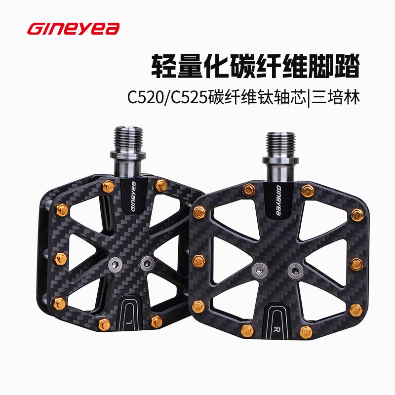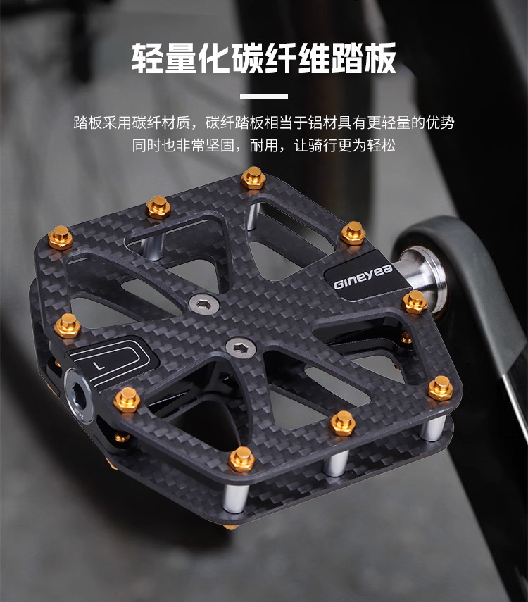 Gineyea碳纖維腳踏自行車公路車山地車防滑釘踩面鈦合金軸腳踏