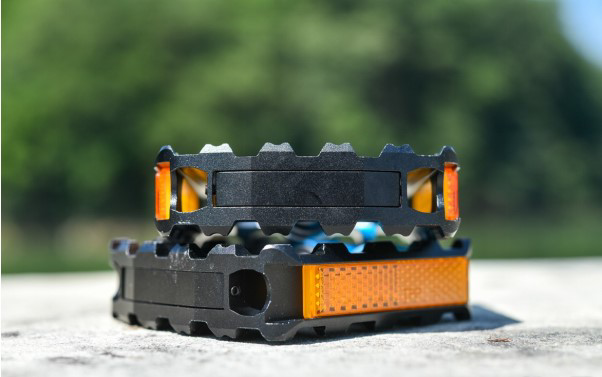 K503F的邊緣具有防滑凸起設(shè)計(jì),避免騎行時(shí)腳底打滑,同時(shí)帶有反光片,保障夜騎安全。